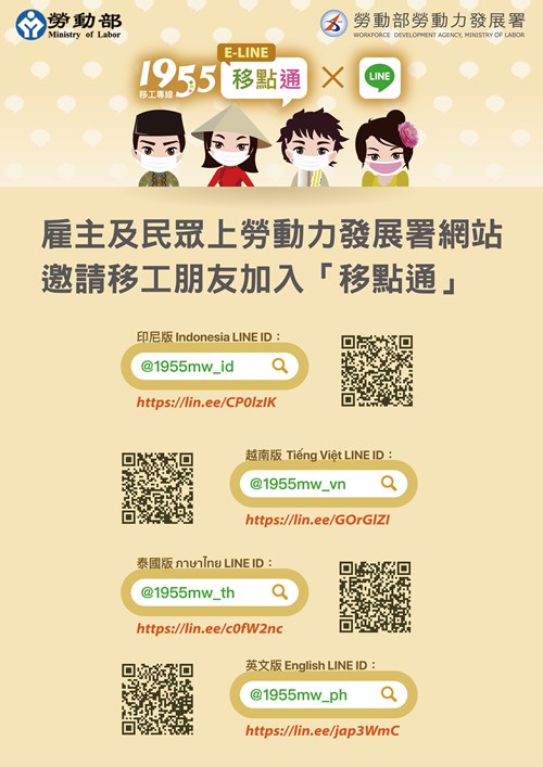 四、加強宣導防疫措施:已於6月6日以「LINE@移點通」主動推播、發布新聞稿、移工權益網站、1955臉書及多國語廣播電臺,呼籲移工非必要不要外出,提醒桃竹苗地區之家事移工,注意自身健康情形,若有症狀或接觸史,儘速登記快篩。