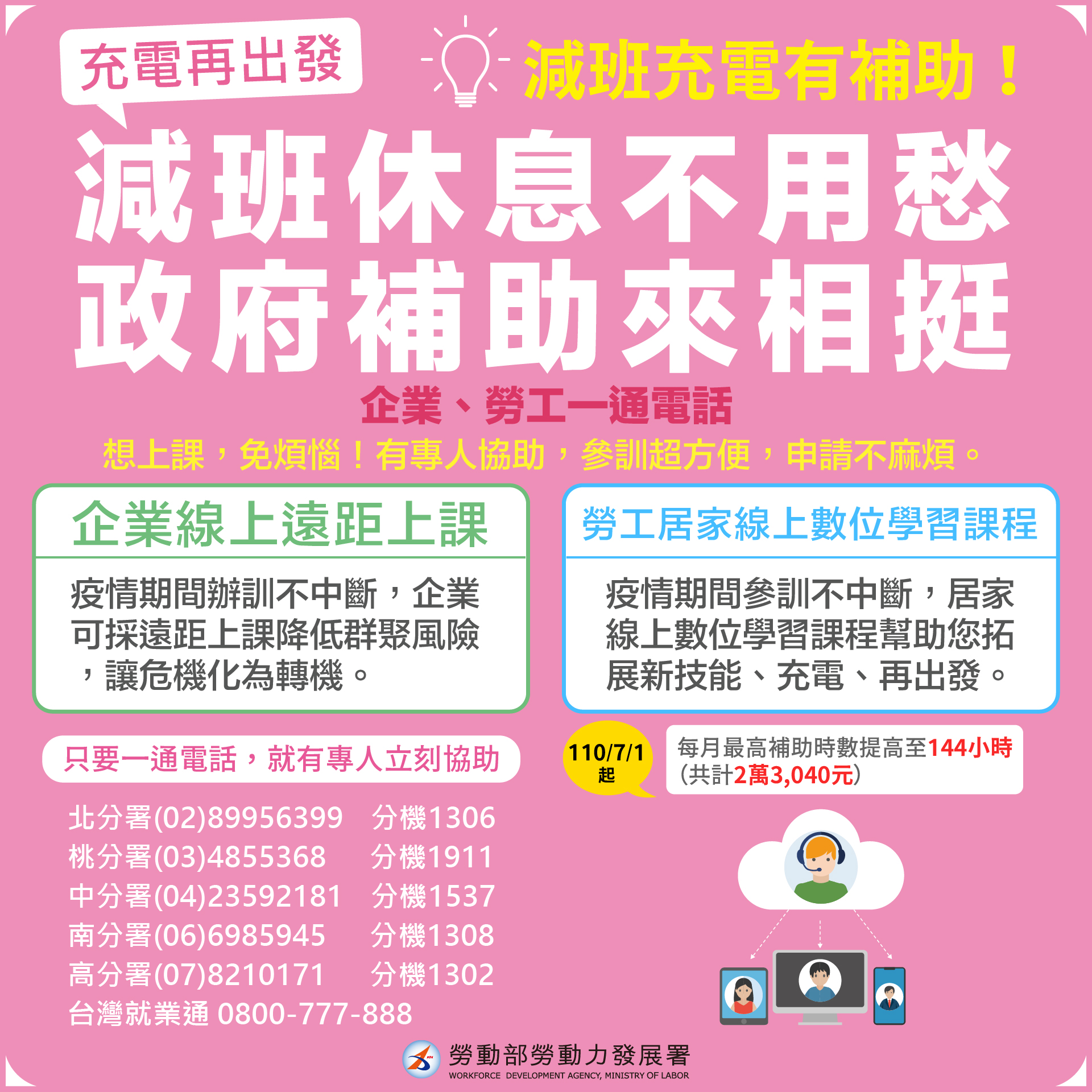勞工補助再加碼、線上學習不中斷,勞動部助您「既安心又充電」!
