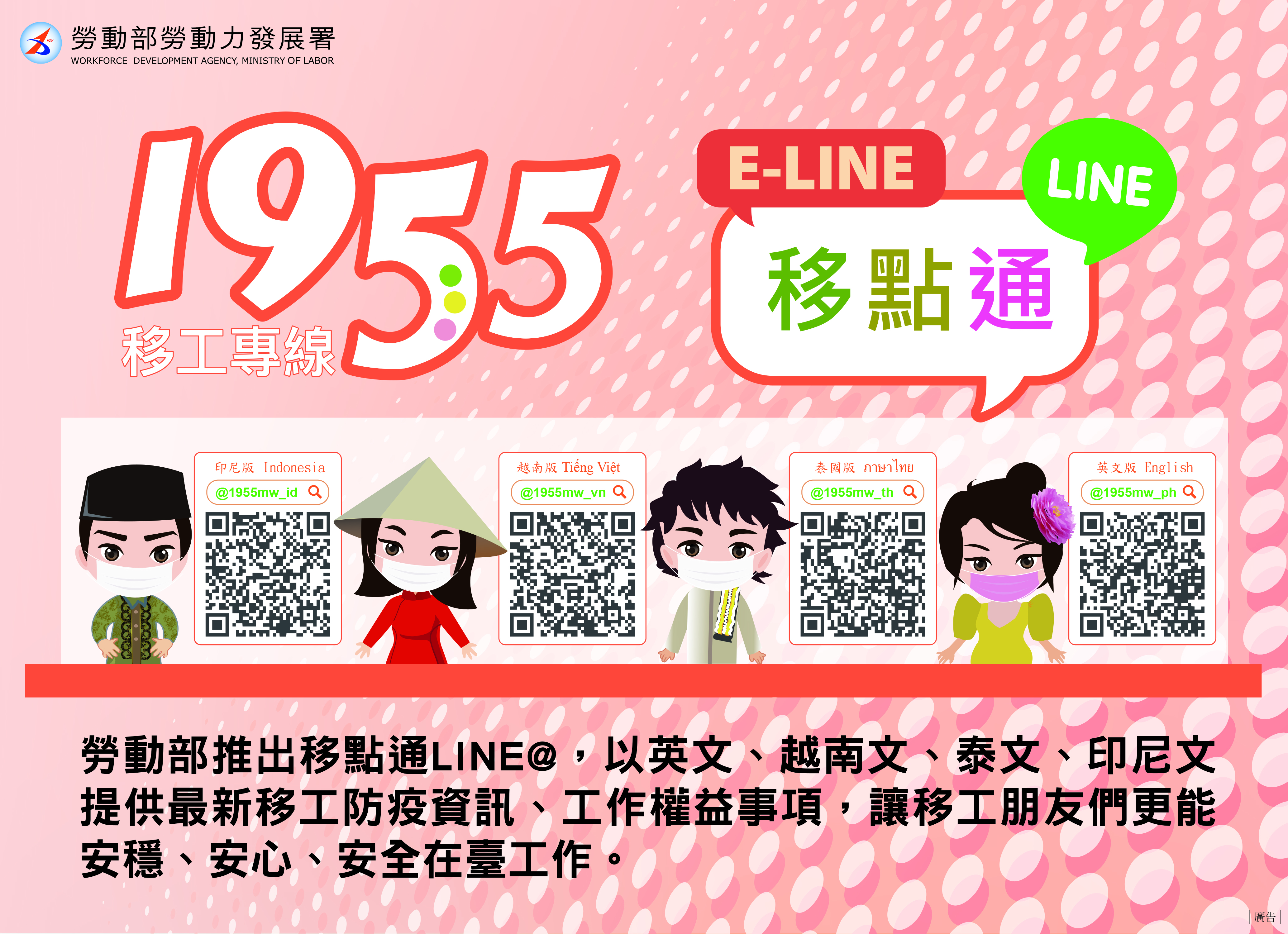 許部長再次提醒移工朋友們,如有非洲豬瘟相關問題,歡迎撥打「1955」專線,也歡迎加入「LINE@移點通」,隨時獲得最新的非洲豬瘟防疫母語宣導資訊,另多國語防疫宣導訊息,可上跨國勞動力權益維護資訊網站防疫專區(網址: https://fw.wda.gov.tw/)查詢。勞動部也透過多元管道將非洲豬瘟的防疫措施,透過「LINE@移點通」、「1955臉書專頁」、「跨國勞動力權益網站」及多元國語廣播等方式,以母語向移工宣導,希望讓移工能在臺安心工作,共同防堵非洲豬瘟入侵。